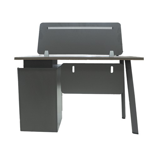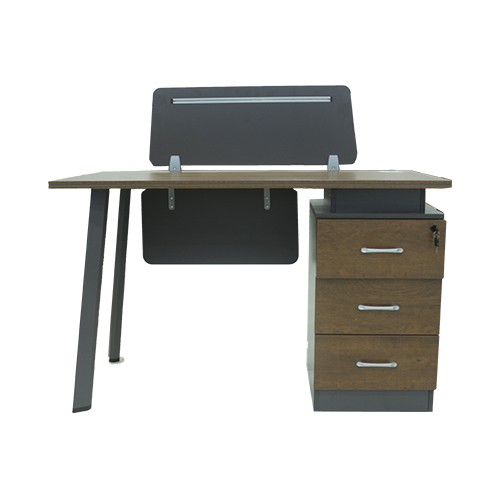 مكتب خشب بني، بتصميم مدمج وعملي يتضمن وحدة أدراج لتخزين الملفات و المستلزمات بشكل منظم، بينما يوفر الحاجز الأسود الخصوصية لمزيد من التركيز والراحة، مكتب خشب بني مثالي لمكاتب العمل والبيئات التجارية، ويجعل مساحة العمل تتميز بالانتظام والفاعلية.